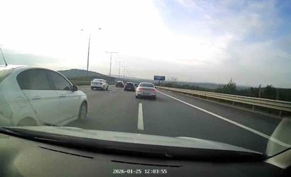 Beykoz sınırları içindeki Kuzey Marmara Otoyolu TEM bağlantı yolunda makas atan bir sürücünün tehlikeli manevraları yol güvenliğini hiçe saydı. O anlar araç kamerasına yansıdı.