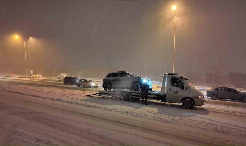 Karla kaplanan yollarda ilerlemekte zorlanan araçlar uzun süre trafikte mahsur kaldı; ulaşımda aksamalar yaşandı ve vatandaşlar zor anlar geçirdi.