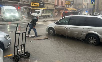 Ayrıca, rögar kapağını açan bir esnaf göle dönen yolda yüzen metal kutuları tutarak suyun tahliyesine yardımcı oldu ve biriken suyun akmasını sağladı.