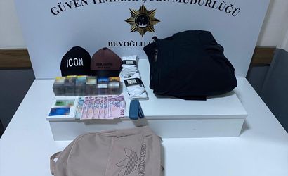 Beyoğlu'nda çeşitli iş yerlerinden hırsızlık yaptığı öne sürülen şüpheli, güven timlerince gözaltına alındı. Şüphelinin üzerindeki aramada, çalıntı malzeme, bir miktar para, kamufle olmak için kullandığı bazı kıyafetler ele geçirildi.