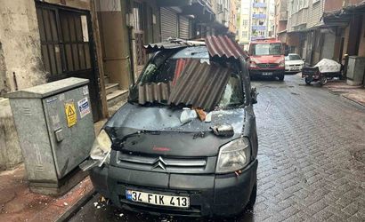 Beyoğlu'nda lodos dehşeti: Çatı sokakta savruldu, araç hasar gördü