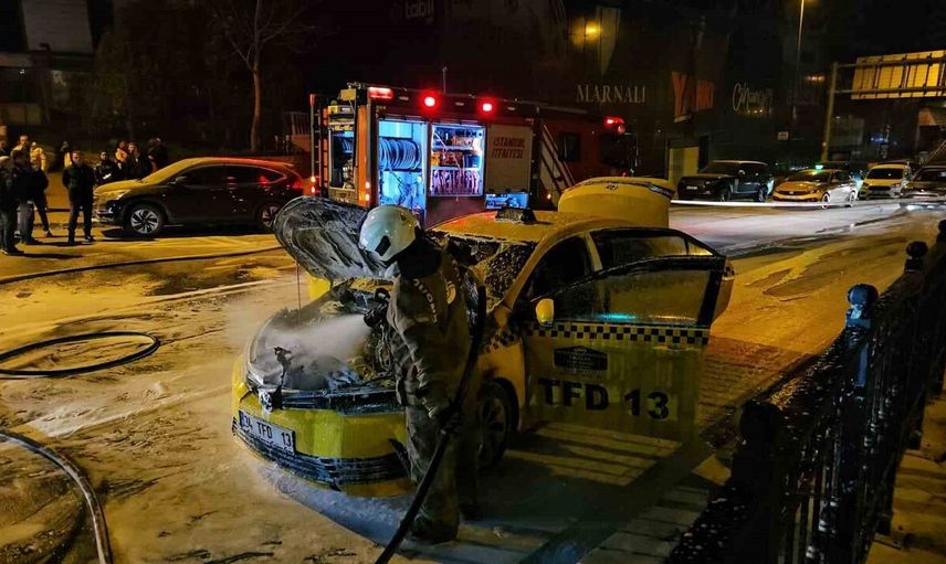 Olay, saat 22.20 sıralarında Beyoğlu Refik Saydam Caddesi Taksim istikametinde meydana geldi. Sürücü D.K. idaresindeki 34 TFD 13 plakalı ticari taksi, içinde bulunan 3 yolcu ile seyir halindeyken motor kısmında alevler yükseldi.