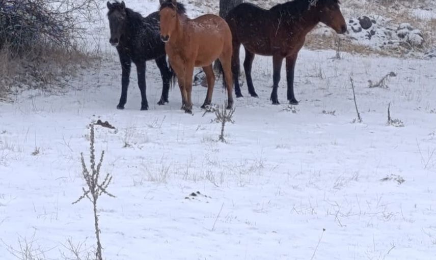 Karla kaplı doğa ve yılkı atlarının birlikteliği, bölgeye gelenler için kartpostallık sahneler oluşturdu.