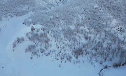 Gece hava sıcaklığının bazı bölgelerde eksi 14 dereceye kadar düşmesiyle dağlar ve vadiler buz tuttu. Dron ile havadan çekilen görüntüler, ilçenin kış güzelliğini gözler önüne serdi.