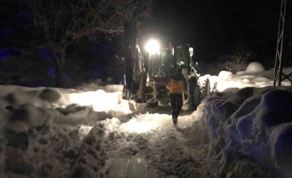 Beşağaç köyünde 73 yaşındaki hasta için 2 saatlik yol açma çalışması