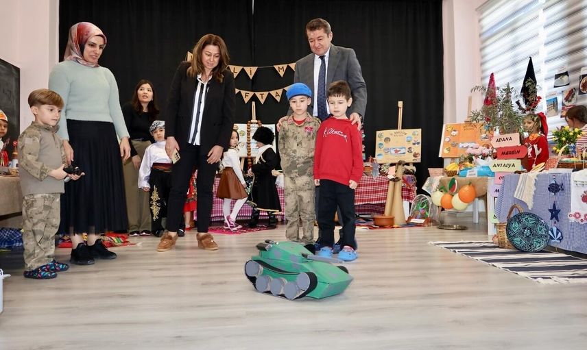 Bahçelievler Anaokulu'nda düzenlenen etkinliklerde, anaokulu öğrencileri hazırladıkları çalışmalarla yerli malı kullanma ve tasarruf bilincinin önemini vurguladı. Küçüklerin ürettiği eserler etkinlik boyunca büyük beğeni topladı.