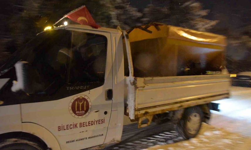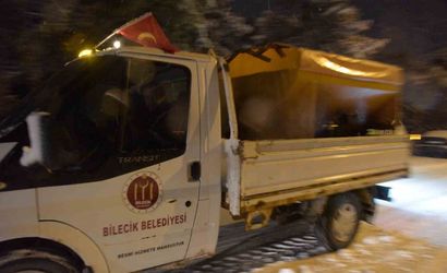Tüm yurtta olduğu gibi Bilecik'te de etkili olan kar yağışı nedeniyle Bilecik Belediyesi Fen İşleri Müdürlüğü ekipleri, gece saatlerinden başlayıp sabah saatlerine kadar yoğun bir mesai yürüttü.