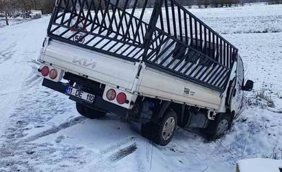 Bilecik’in Pazaryeri ilçesi Büyükelmalı köyü yolunda seyir halindeki kamyonet, zeminin buzlu olması nedeniyle sürücünün direksiyon hakimiyetini kaybetmesi sonucu tarlaya uçtu.