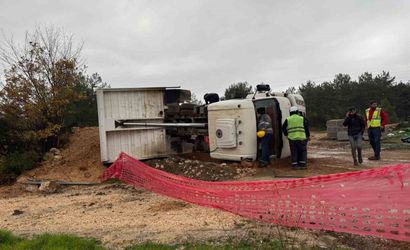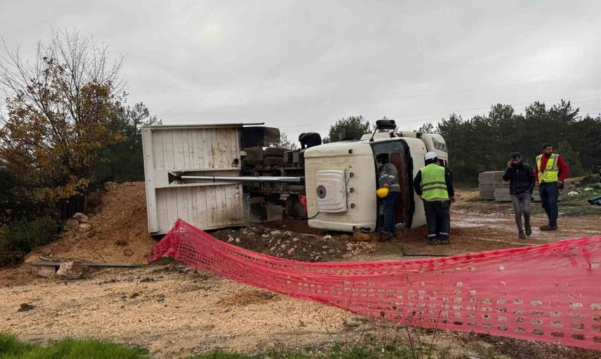 Bilecik merkez Bahçelievler Mahallesi Arabacı Sokak üzerinde bulunan hafriyat dökme sahasında meydana gelen kazada, sürücünün hakimiyetini kaybetmesi sonucu kamyon devrildi.