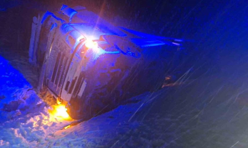 Detaylar: Kar yağışı nedeniyle kayan 35 CGA 725 plakalı tırın sürücüsü Ali B. bir anda direksiyon hakimiyetini kaybetti. Kayan araç kontrolden çıkarak yol kenarına devrildi ve kazada sürücü yaralandı.