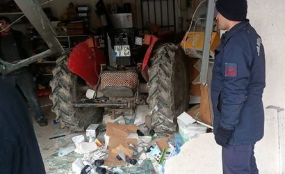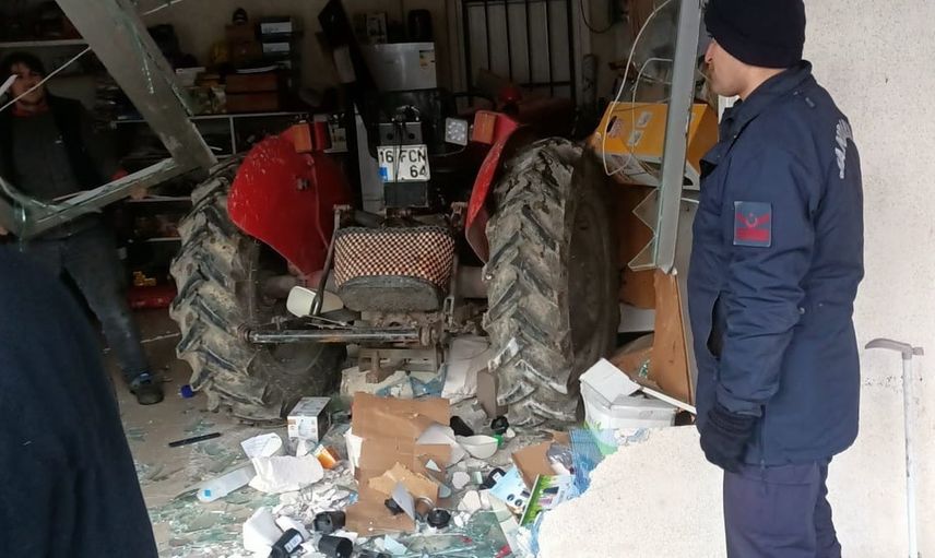 Bilecik'te kontrolden çıkan traktör iş yerine daldı