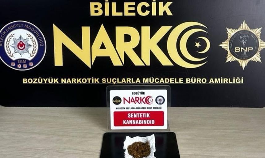 Bozüyük Narkotik Suçlarla Mücadele Büro Amirliği ekiplerince yürütülen çalışmada muhtelif miktarda sentetik kannabinoid maddesi tespit edildi.