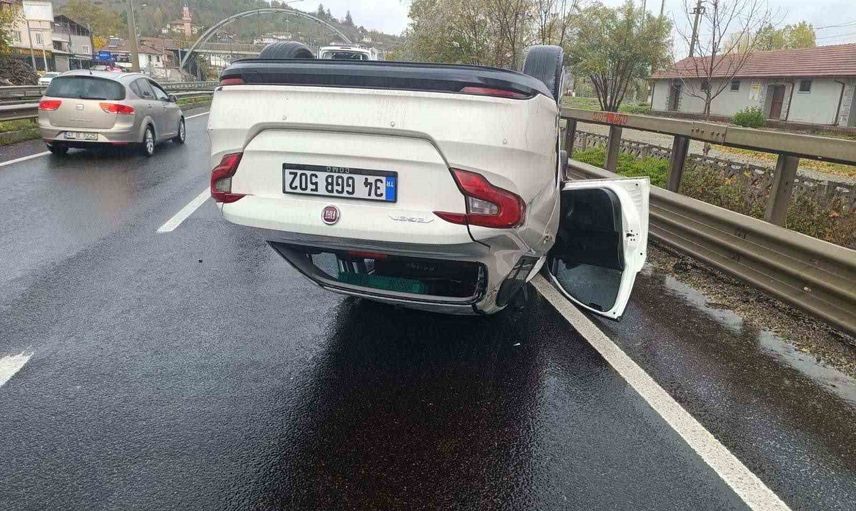 Bilecik'in Pazaryeri ilçesinde, D-650 karayolunda meydana gelen kazada bir otomobil takla attı. Olayda sürücü hafif şekilde yaralandı.