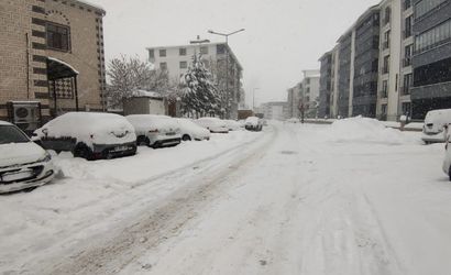 Gece boyunca etkili olan yağışla kent merkezinde esnaf, iş yerlerinin önlerini küreklerle temizleyerek güne hazırlanıyor. Park halindeki araçların üzerleri yoğun karla kaplanırken, vatandaşlar araçlarını temizlemek için çaba gösteriyor.