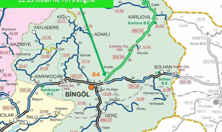 Bingöl-Diyarbakır Devlet Yolunun 0-31 km’leri arası (Genç ilçe girişi ile Diyarbakır il sınırı arası) saat 12.10 itibarıyla tır trafiğine açılmıştır.