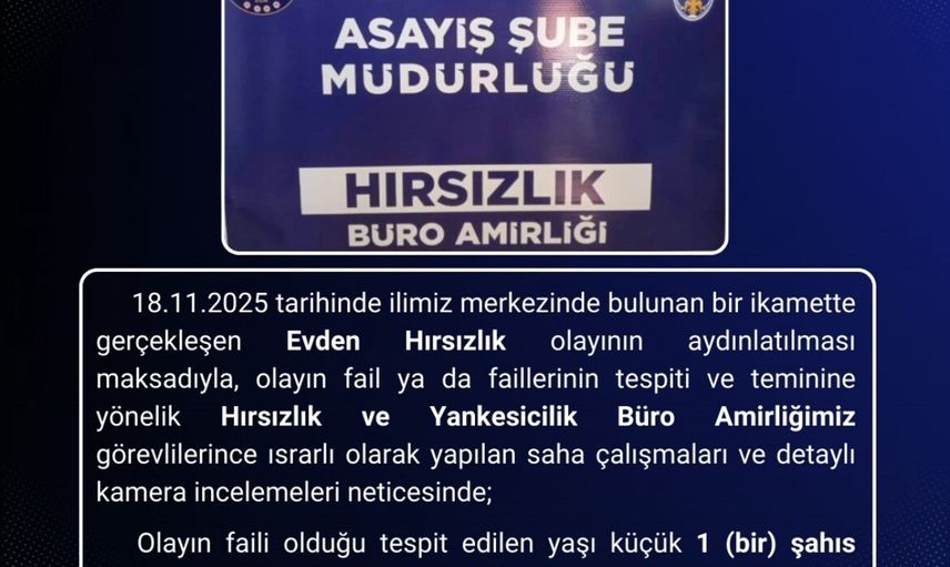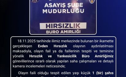 Bingöl İl Emniyet Müdürlüğü'nün açıklamasına göre, 18.11.2025 tarihinde il merkezi sınırlarında bir ikamette gerçekleşen evden hırsızlık olayının aydınlatılması amacıyla, Hırsızlık ve Yankesicilik Büro Amirliği ekipleri tarafından ısrarlı saha çalışmaları ve detaylı kamera incelemeleri yapıldı.