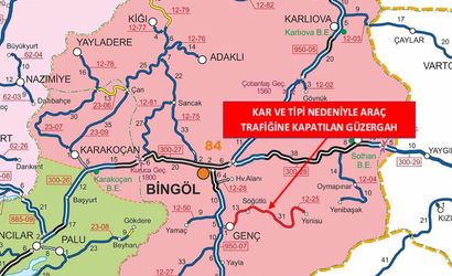 Bingöl'de etkili olan yoğun kar yağışı ve tipi nedeniyle Genç-Yenisu İl Yolunda ulaşım durduruldu. Söz konusu yolun 2 ile 44’üncü kilometreleri, saat 18.00 itibarıyla araç trafiğine kapatıldı.