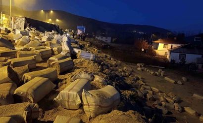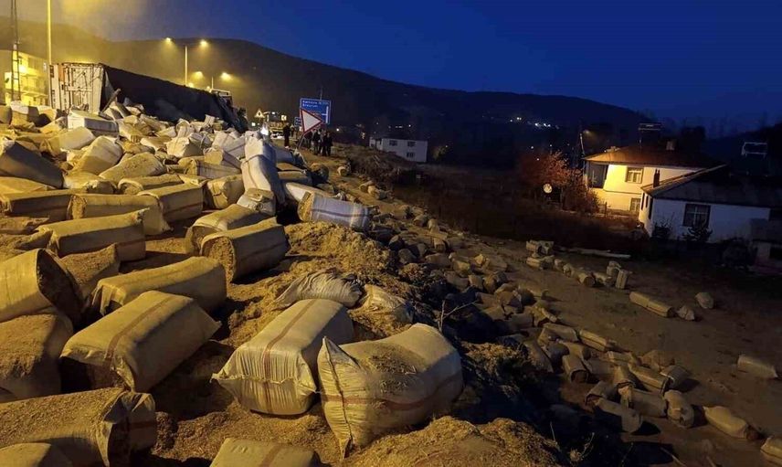 Edinilen bilgiye göre, 12 AFN 110 plakalı saman yüklü kamyon sürücüsünün direksiyon hakimiyetini kaybetmesi sonucu kontrolden çıkarak devrildi. Devrilme sırasında kamyondaki saman balyaları yola savruldu ve kaza nedeniyle yolun bir bölümü kısa süreliğine trafiğe kapandı.