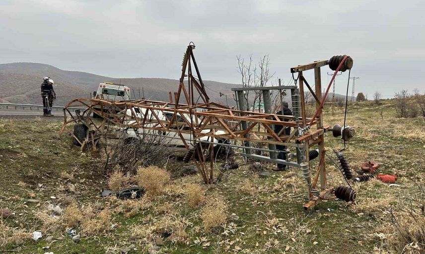 Kardeşler köyü mevkiinde hafif ticari araç elektrik direğine çarptı