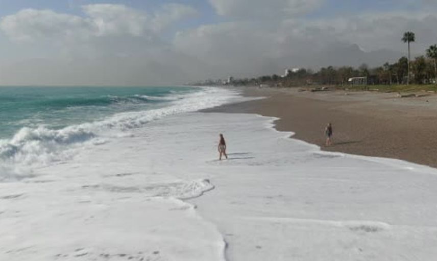Bir haftadır süren olumsuz hava koşullarının ardından Konyaaltı sahili doldu taştı