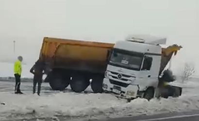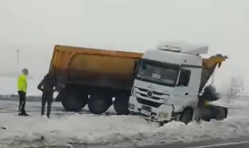 Bismil ilçesinde kar nedeniyle kayganlaşan yolda kamyon ve dört otomobil çarpıştı