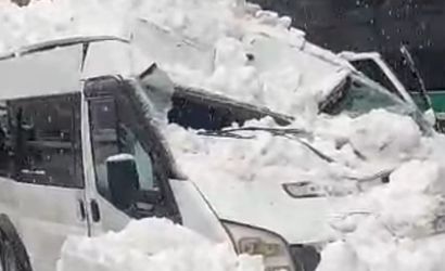 Bitlis’te çatıda biriken kar minibüsün üzerine düştü