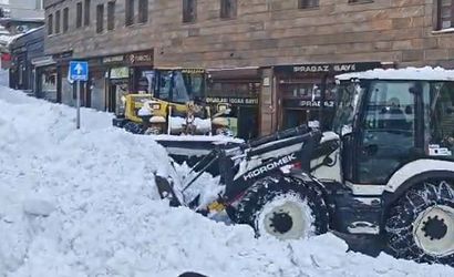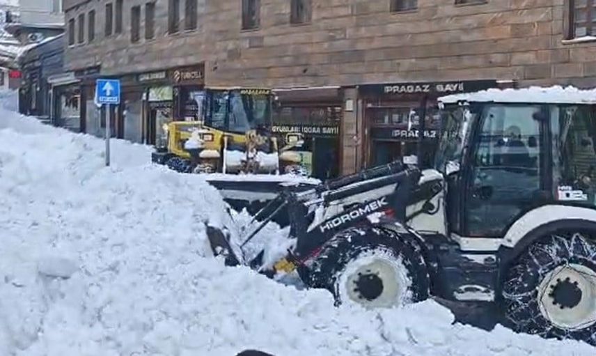 Çarşı merkezinde yoğun kar temizliği sırasında büyük gürültü ve kısa süreli panik yaşandı