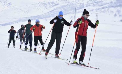 Bitlis’te kayaklı koşucular kar ve ayazda antrenmanlarını sürdürüyor