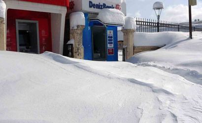Caddeler ve sokaklarda ilerlemek güçleşirken, vatandaşlar bankamatik ve para çekme noktalarında zor anlar yaşıyor. Kar yığınlarıyla çevrili ATM'lerin önünde ayakta duracak alan bulamayan insanlar, karın üzerine oturarak işlem yapmak zorunda kalıyor.
