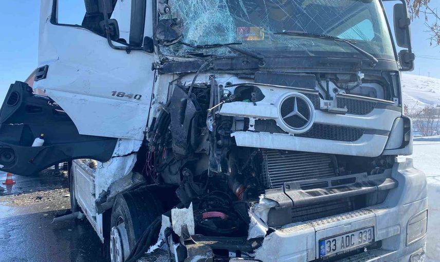 Sürücüsü henüz belirlenemeyen 33 ADC 933 plakalı tır, ışıklarda bekleyen ve sürücüsü ile plakası tespit edilemeyen diğer tıra arkadan çarptı.