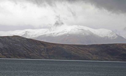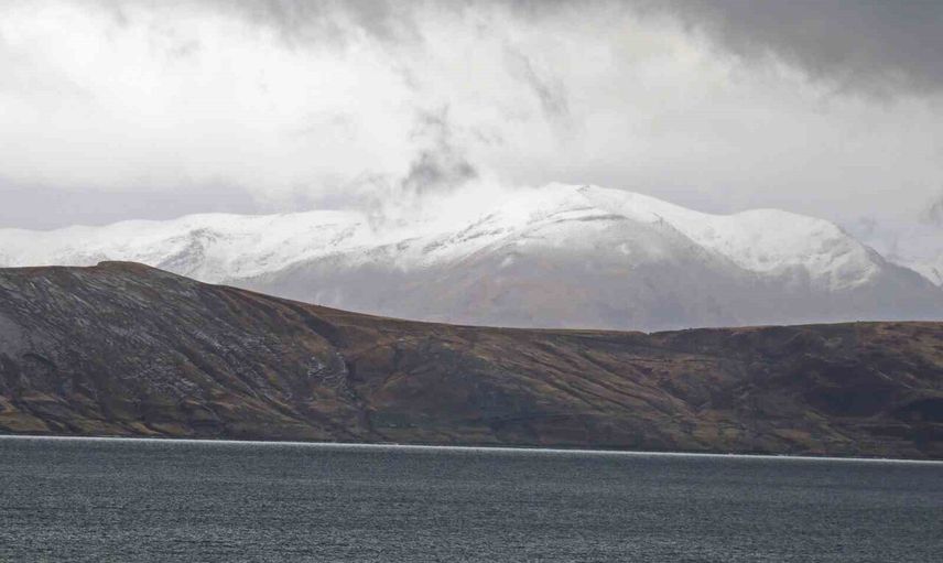 Bitlis’te yüksek kesimler karla kaplanırken, göl kıyısında farklı bir manzara