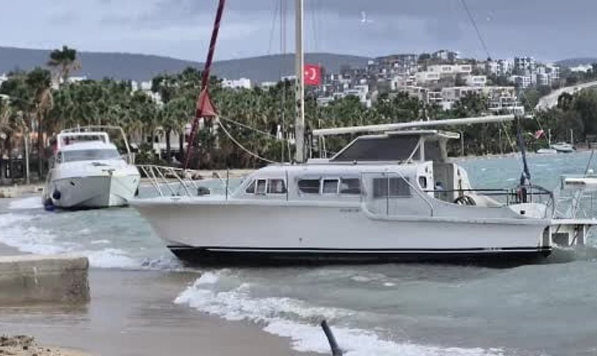 Meteoroloji'nin uyarısının ardından sabah saatlerinde etkili olan fırtına, Muğla'nın Bodrum ilçesindeki Gümbet Koyu'nda demirli tekneleri olumsuz etkiledi. Koyda demirli toplam 8 teknenin kıyıya sürüklendiği gözlendi.