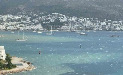 BODRUM’DA SAĞANAK SONRASI DENİZ ÇAMURA DÖNDÜ, İKİYE AYRILAN RENK GÖRENLERİ ŞAŞIRTTI