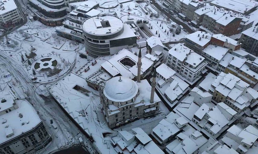 Kent merkezinde 10 santimetreye varan kar örtüsü ve drone görüntüleri