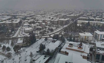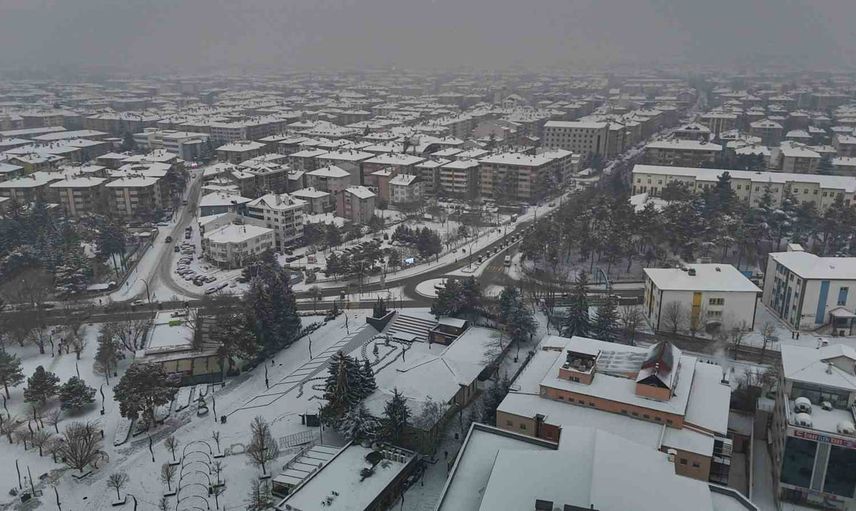 Şehrin üzerine yayılan beyaz örtü ve ortaya çıkan görsel şölen, dron ile havadan kaydedildi. Kayıtlarda, karın kenti sardığı geniş açı görüntüler dikkat çekti.