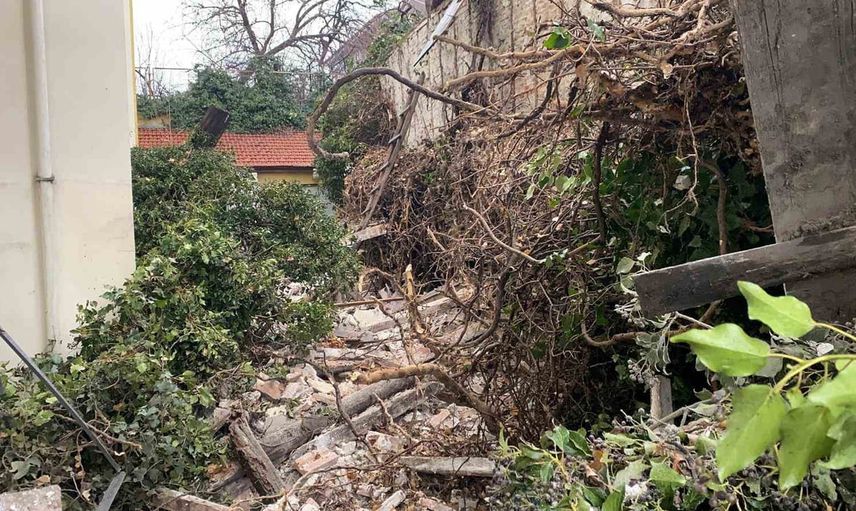 Bolu'da metruk bina çöktü; park halindeki otomobile zarar verdi