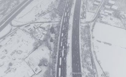 Bolu Dağı geçidinde kar temizleme çalışmaları drone ile görüntülendi