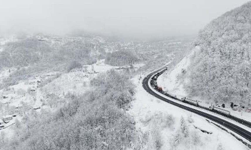 Düzce bölgesinde etkili olan yoğun kar yağışı nedeniyle, İstanbul'dan Hatay'a köprü ayağı taşıyan bir tır rampayı çıkamayarak yolda mahsur kaldı. Araç, Bolu Dağı eteklerinde rampa çıkışında zorlanınca kontrollü şekilde güvenli bir boş alana alındı.