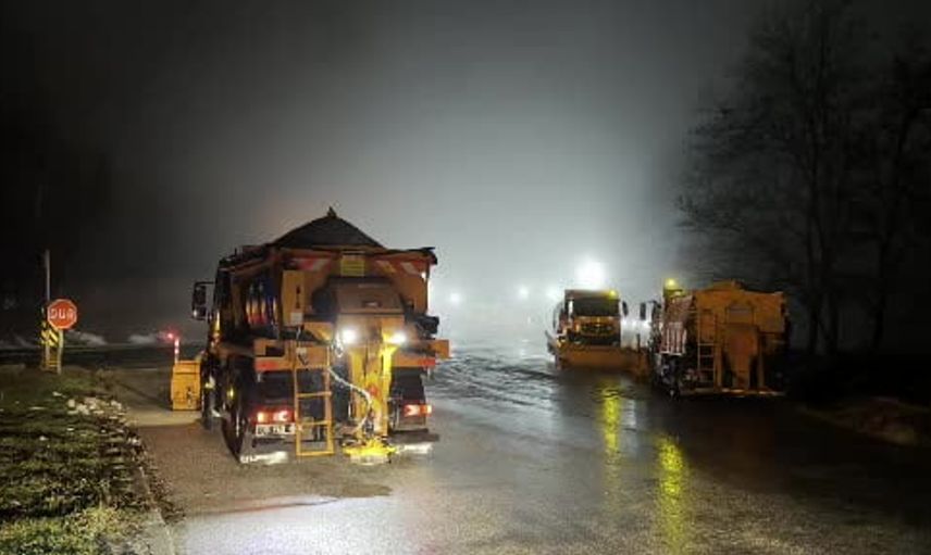 Karayolları Genel Müdürlüğü'ne bağlı ekipler, muhtemel kar yağışı ve buzlanmaya karşı küreme ve tuzlama araçlarını kritik noktalara konuşlandırdı. Rampalar, viyadükler ve virajlı kesimlerde önleyici çalışmalar yürütülürken ekiplerin 24 saat esasına göre görev başında olduğu belirtiliyor.