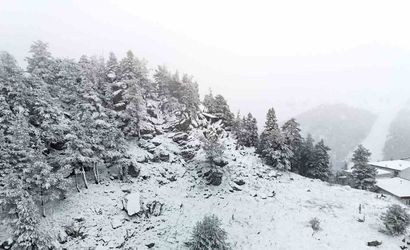 Kartalkaya bölgesi beyaz bir örtüyle kaplanırken, alan dronla görüntülendi.