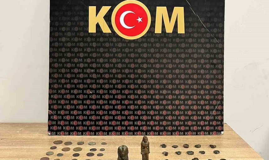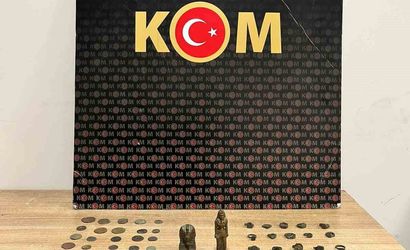 Edinilen bilgilere göre, alınan bir ihbarı değerlendiren ekipler iki şüphelinin ev ve araçlarında arama yaptı. Yapılan aramalarda 55 adet sikke, 34 adet yüzük ve 2 adet tarihi obje bulundu.