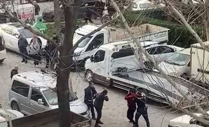 İzmir'in Bornova ilçesinde, Çamdibi Polis Merkezi önünde meydana gelen olayda, trafikte çıkan tartışmanın ardından bir ticari otomobil sürücüsü iki kişi tarafından sopalarla darp edildi.