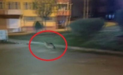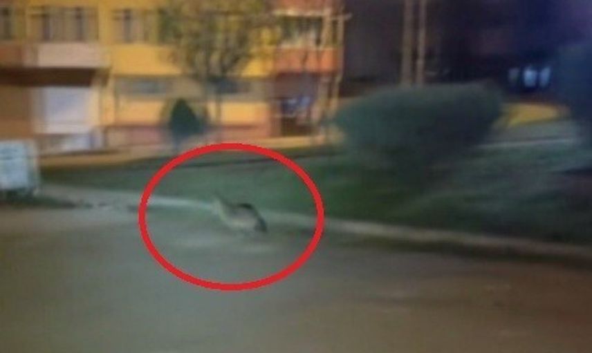 Vatandaşların şaşkın bakışları arasında saniye saniye kaydedilen görüntülerde, çakal bir süre sonra ortadan kayboldu.
