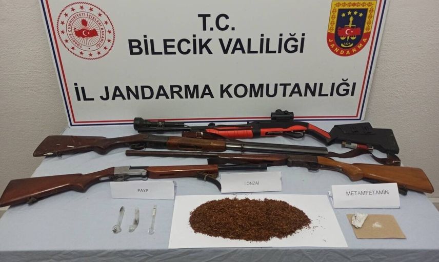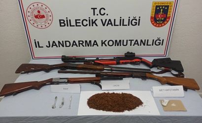 Bilecik İl Jandarma Komutanlığı’nın yürüttüğü çalışmada çok sayıda madde ve silah ele geçirildi