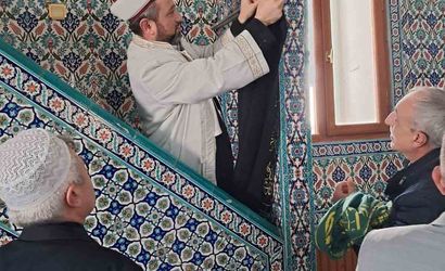 Büğdüz Mahalle Camii'nin minber örtüsü yenilendi