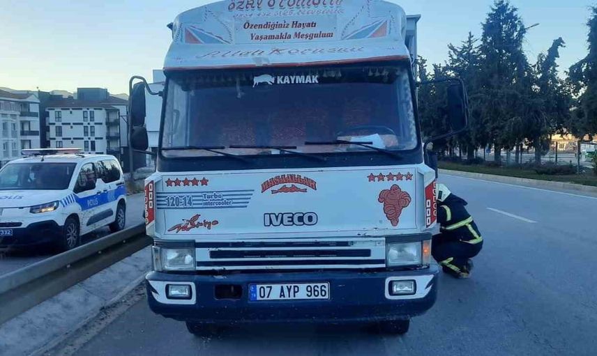 Burdurun Bucak ilçesinde seyir halindeki bir kamyonetin lastiğinde çıkan yangın, itfaiye ekiplerinin müdahalesiyle söndürüldü.