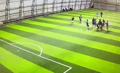 Halı sahanın güvenlik kamerasına yansıyan görüntülerde iki kişinin önce tartıştığı, ardından tekme ve tokatların bulunduğu bir kavgaya dönüştüğü anlar yer alıyor.