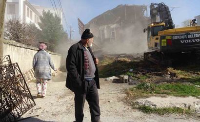 BURDUR'DA UZUN SÜREDİR TARTIŞMA KONUSU OLAN METRUK BİNA BUGÜN SABAH SAATLERİNDE EKİPLER TARAFINDAN YIKIMINA BAŞLANDI. METRUK BİNANIN ARKASINDAKİ EVİNDE YAŞAYAN KADININ OLAY ÇIKARMASININ ARDINDAN YIKIM YARIDA KALDI.