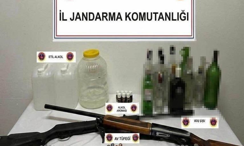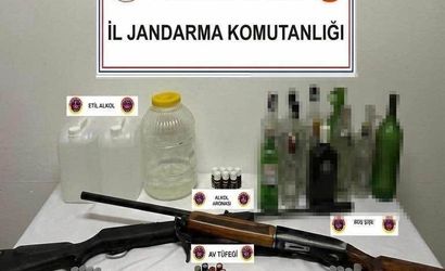Aramalarda ele geçirilenler arasında 3 litre sahte rakı, 10 litre etil alkol ile 7 adet alkol aroması ve 15 adet boş alkol şişesi bulunurken, silah ve mühimmat olarak da 1 adet havalı tüfek, 1 adet yivsiz av tüfeği ve 53 adet av tüfeği fişeği ele geçirildi.