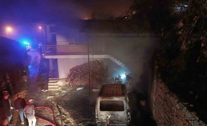 Çıkan alevler, evin altında park halinde bulunan hafif ticari araca ulaşarak hem konutta hem de araçta büyük çapta maddi hasara neden oldu.